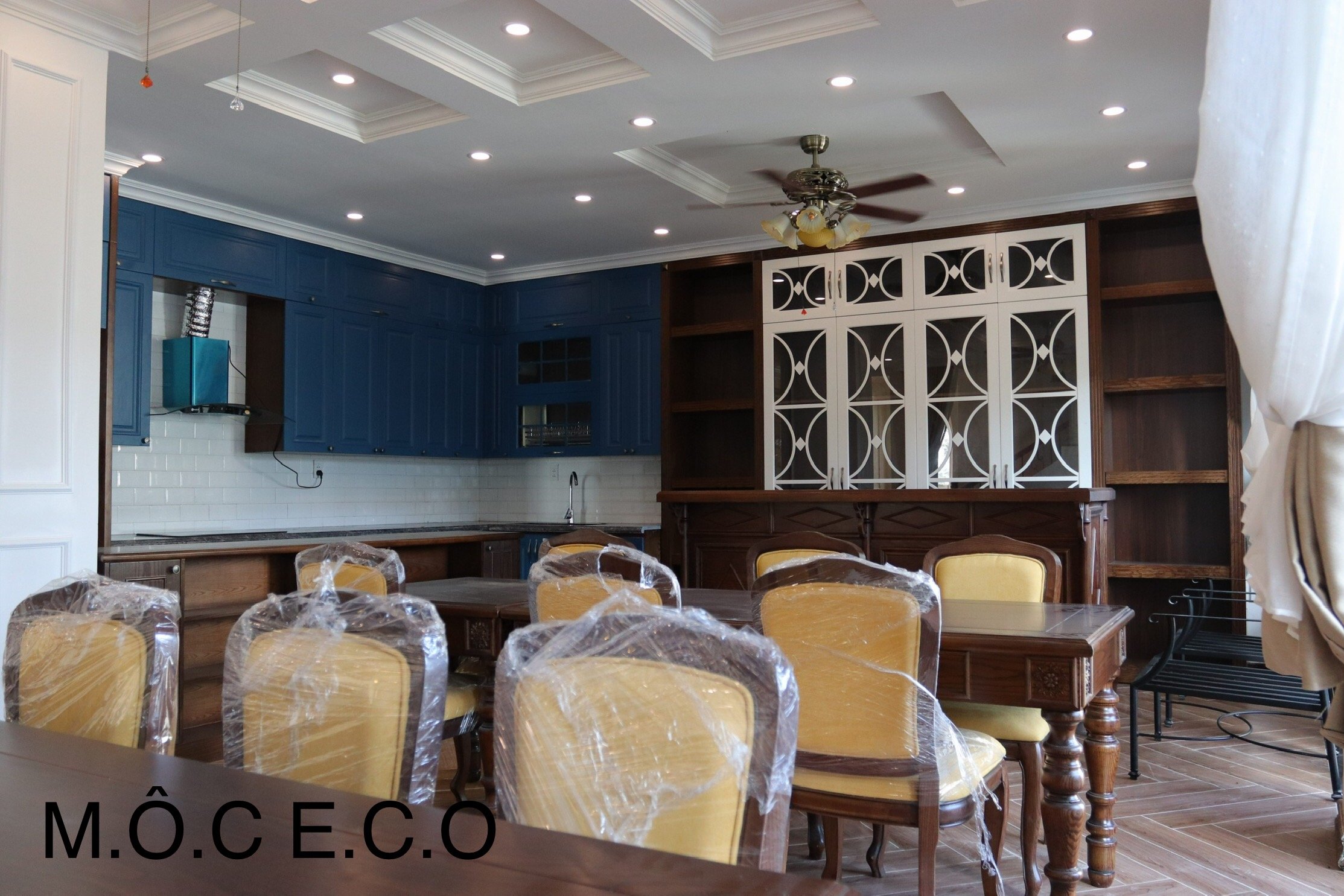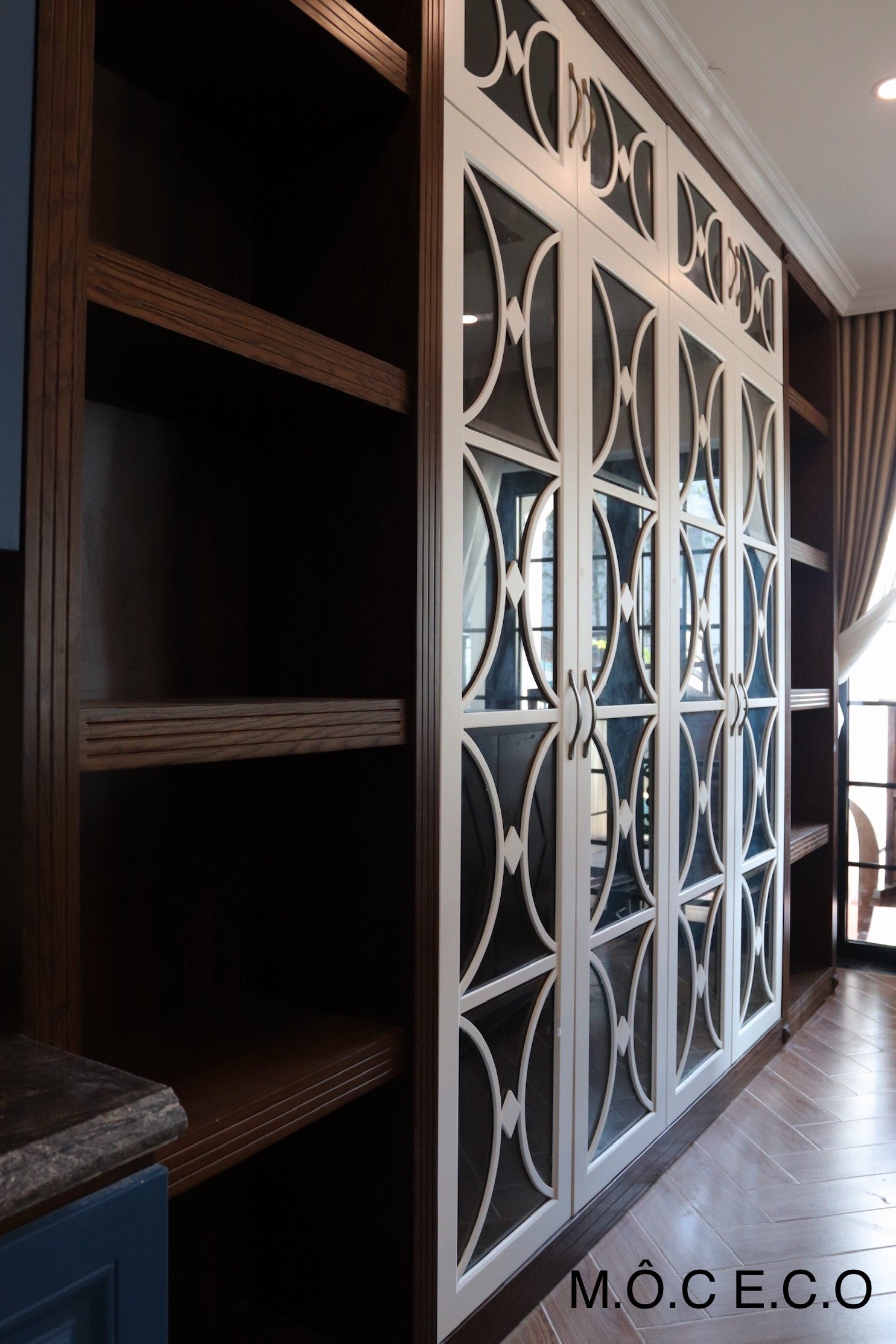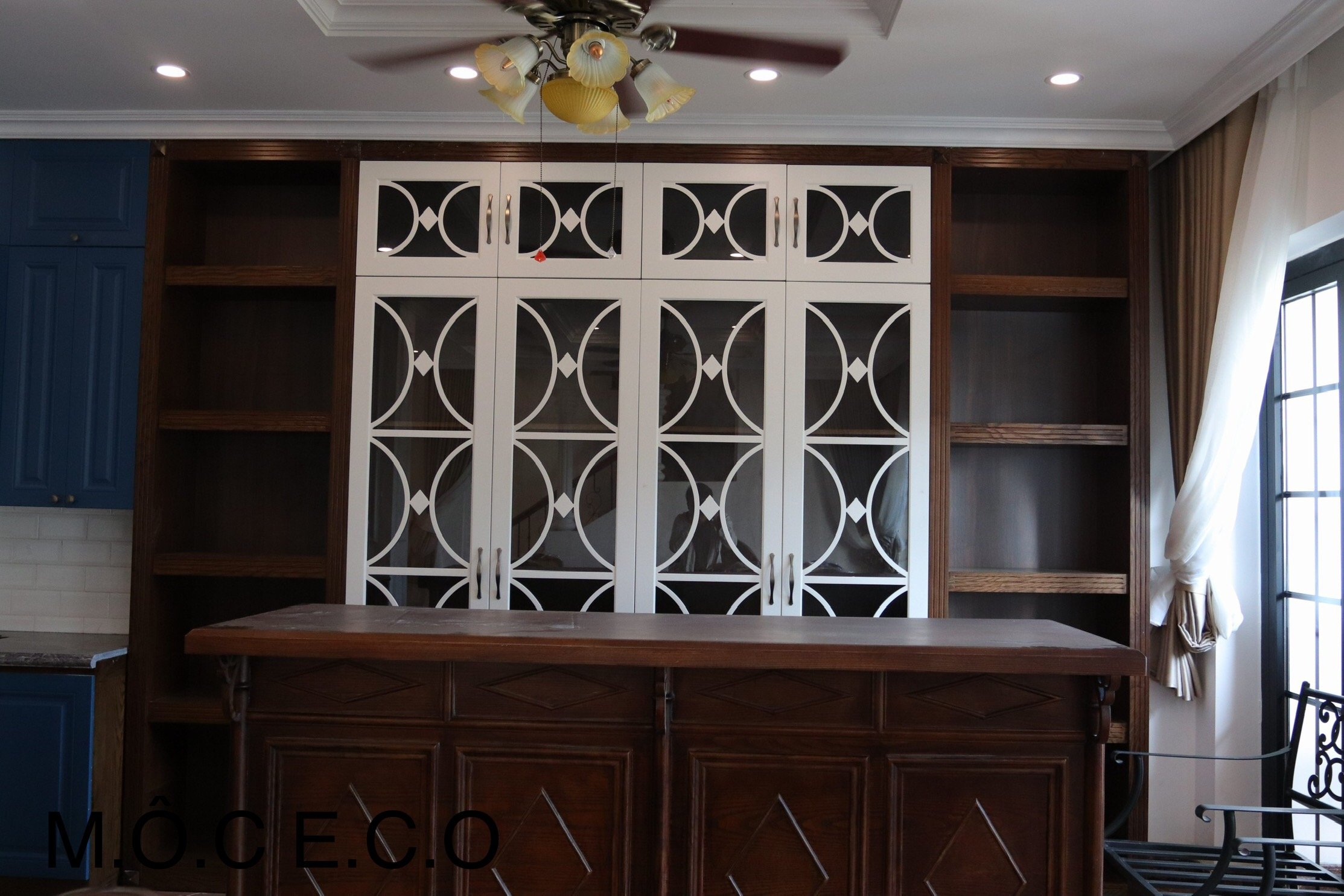 Tủ để đồ dùng nhà bếp bằng gỗ sồi tự nhiên, được chia thành các ngăn 1 cách hợp lý và thuận tiện cho việc sử dụng.