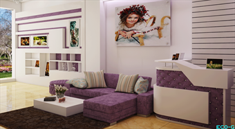 Màu sắc Studio cũng được quan tâm hàng đầu, bởi bản thân nó là một mảng nghệ thuật quan trọng nên hình ảnh bề ngoài phải bắt mắt và tạo được ấn tượng mạnh mẽ. Với đơn sắc tím, căn phòng trở nên ấm cúng thân thiết mà vô cùng trẻ trung hiện đại, khách hàng tới đây sẽ tìm được cảm giác thoải mái an tâm nhất.