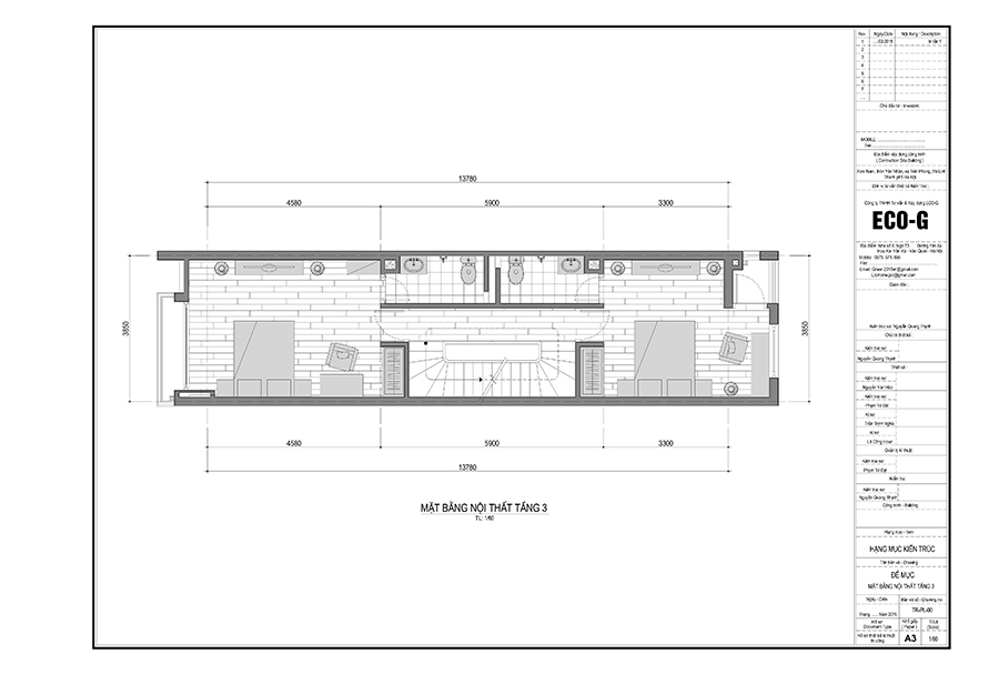 Với diện tích đất của chủ nhà như hiện trạng, mặt tiền rộng 4m và sâu vào trong nhiều, đây cũng là 1 thách thức với công ty thiết kế kiến trúc để đưa ra phương án tối ưu về cả hình thức lẫn nội dung công trình. Lấy tầng 1 làm nền cho hình khối công trình, đưa ra những mảng khối liên kết cả tuyến nhà lô theo chiều dọc tạo nên nét riêng cho công trình. Không những thế, liên kết nội bộ giữa khối của các tầng làm cho hình khối thêm phàn chặt chẽ thêm.