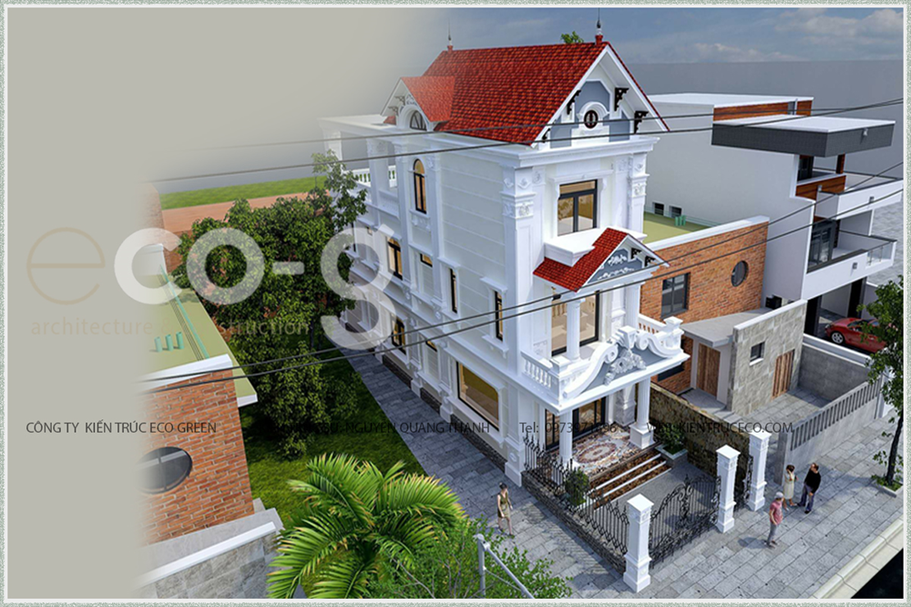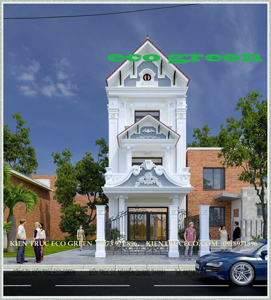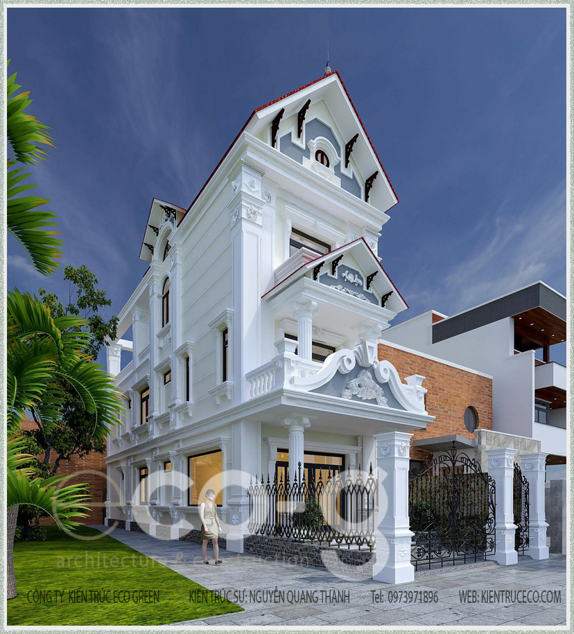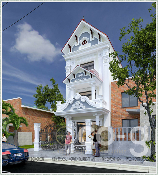 Thiết kế biệt thự tân cổ điển 3 tầng cố kính sang trọng với diện tích 5x15m, biệt thự tân cổ điển với 2 mặt thoáng, mặt đường khá rộng rãi tạo thuận lợi để phô diễ hết cái đẹp, nguy nga của biệt thự tân cổ điển 3 tầng. Cùng với bộ óc sáng tạo không ngừng của đội ngũ KTS công ty Kiến Trúc Eco Green, biệt thự đẹp 3 tầng được chăm chút tỉ mỉ từ đường nét cổ điển đén gờ phảo chỉ đều được khắc họa rõ nét, sang trọng phù hợp với biệt thự tân cổ điển này.
