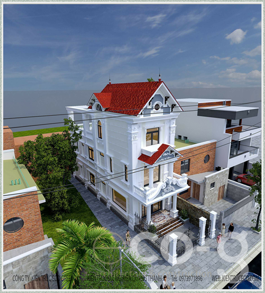 Một yếu tố tạo nên cái đẹp cho biệt thự tân cổ điển 3 tầng phải nói đến chi tiết tỉ mỉ của cột nhà, chúng được khoác lên mình những nét khắc hoàn hảo, gắn bởi phù điêu đẹp mắt chất lượng. Hơn nữa biệt thự mái thái, thiết kế biệt thự mái thái, biệt thự đẹp càng làm nổi bật cái đẹp cổ điển của biệt thự tân cổ điển 3 tầng.
