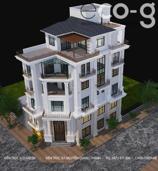 Thiết kế biệt thự, biệt thự tân cổ điển, biệt thự tân cổ điển 5 tầng