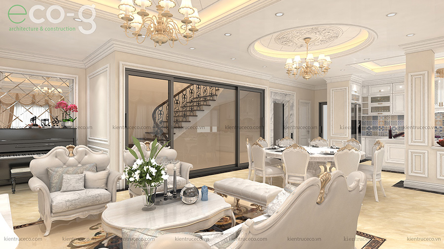 Song hành cùng Thiết kế biệt thự cổ điển thì Thiết kế nội thất theo cùng phong cách cũng là việc quan trọng cần được chăm chút kỹ lưỡng, tỉ mỉ. Để tránh sự nhàm chán cho mẫu thiết kế nội thất Cổ điển thường gặp, Kiến trúc ECO-Green-Dịch vụ thiết kế nội ngoại thất tại Hà Nội đã cách tân chúng và quả thực mang lại hiệu quả hoàn hảo.